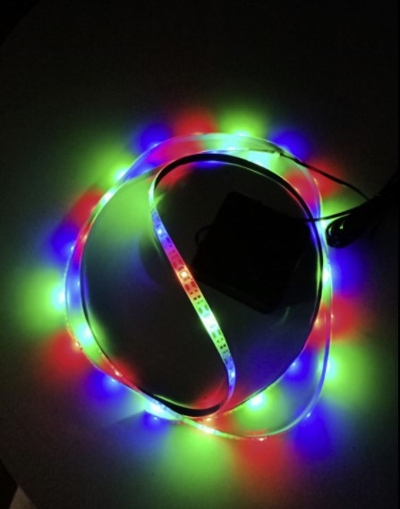 Zip-tie the LED strip around the perimeter of your hoop rim.