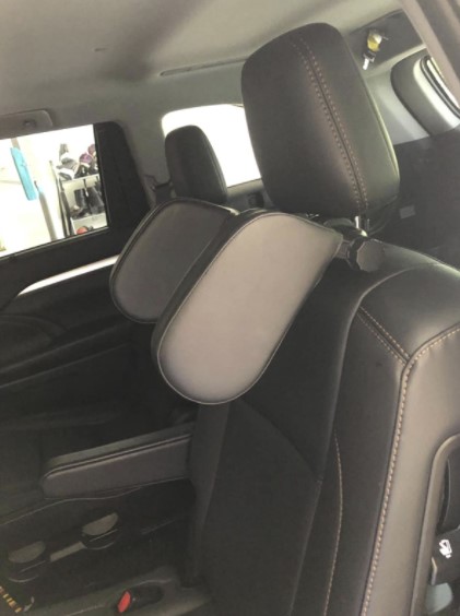 This thing is great!! I finally pulled the trigger and bought one for my 6 yr old and 10 yr old to use on a car trip we're taking this weekend. I have a Ford Explorer, 3 kids in the second row, 1 cart seat. My 6 yr old and 10 yr old are going to use this between them and then the carseat is on the other side to use as a headrest. They also have those neck pillows, but they don't like to use them for some reason. I'm so glad I finally got this. It looks really nice, very easy to move into any position and fits snug and tight on the headrest. My husband tried it out last night and approves as well.