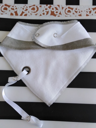 Each bib comes with a strap to hold your baby’s pacifier so it’s always right within reach.