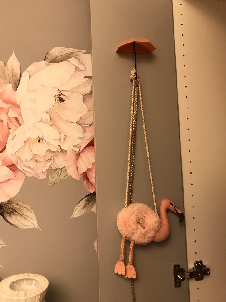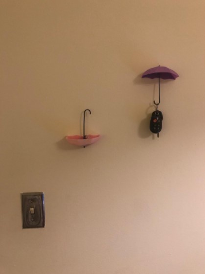 These little umbrellas are so cute. I put them in a corner of our room. I've got rings, necklaces, bracelets and small charms on them. They have a very adhesive back and a good hold. They're very bright colored and I'd reccomend to others. Would be great in a child's room.