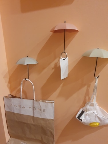 Like opening an umbrella on a wet day, our hooks get to work in the blink of an eye. Each hook comes with double-sided adhesive tape, so all you have to do is remove the protective film and adhere the hook to the wall. Need to shift gears or change? Removing the hooks is easy without worry of removing paint or damaging your walls.