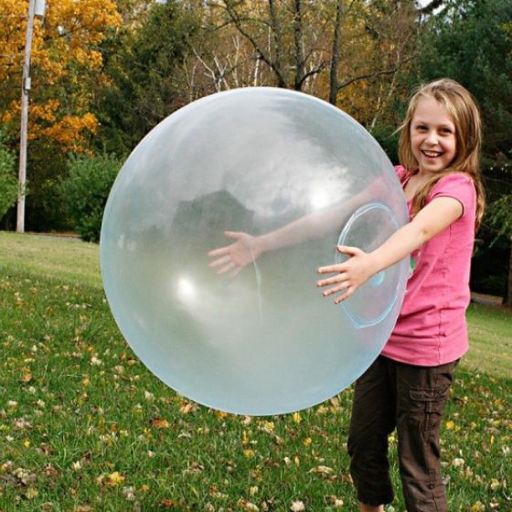 This bubble ball provides endless hours of play and excitement for all ages. I purchased it for our 9 yr. old granddaughter. She plays with it all the time and keeps it in a safe place. She plays inside and outside with it. It's a has a nice feel to it and is very buoyant.