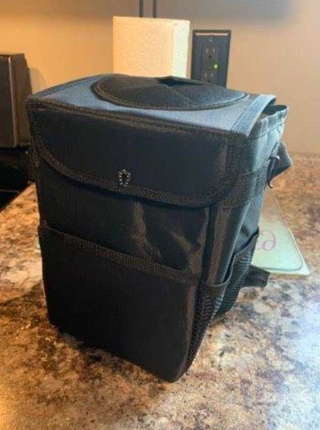 My daughter is so thankful for this car trash can! Great for her car! Much classier than the usual plastic bag and it has a lid so people don’t see/smell the trash! Highly recommend for anyone on the go or with a work car they live out of like we do! Has a zipper pocket to keep bags, etc.!